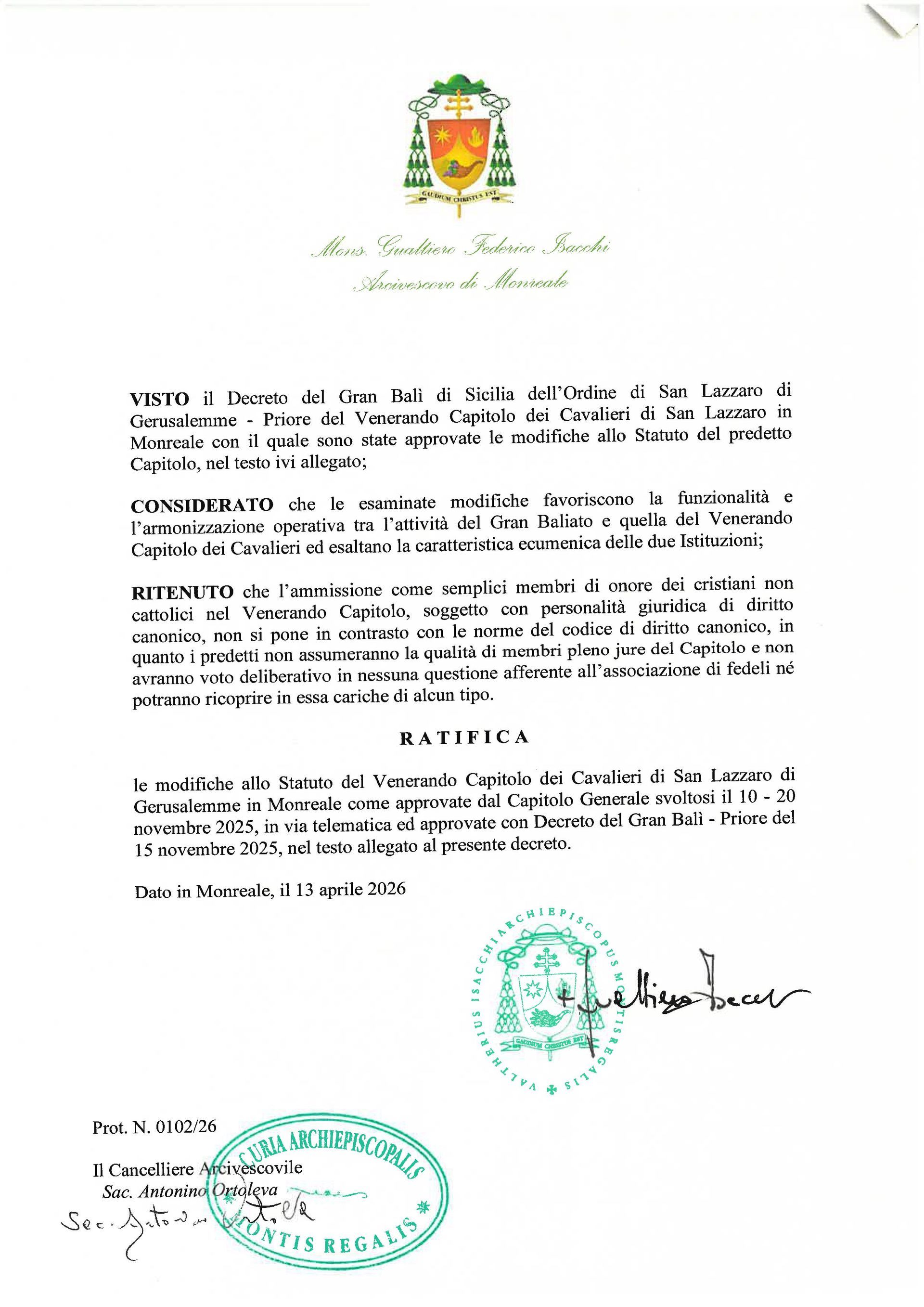 Decreto modificativo del Venerando Capitolo dei Cavalieri di San Lazzaro