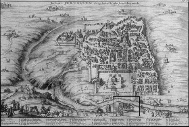 The Hospital of St. Louis of Jerusalem is located on the exact site of the first Crusader leper colony of the Order of St. Lazarus, dating back to the 12th century. An anonymous geographical work written around 1128-1137 makes direct reference to “a leper colony” 'beyond the walls of Jerusalem, between the Tower of Tancred and the Gate of St Stephen'. The exact location is also shown on a contemporary map of Jerusalem from 1130, which depicts the e sec Lazari in the north-western point outside the city walls, between the Tower of Tancred [today's Jaffa Gate] and the Gate of St Stephen [today's Damascus Gate].