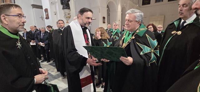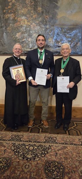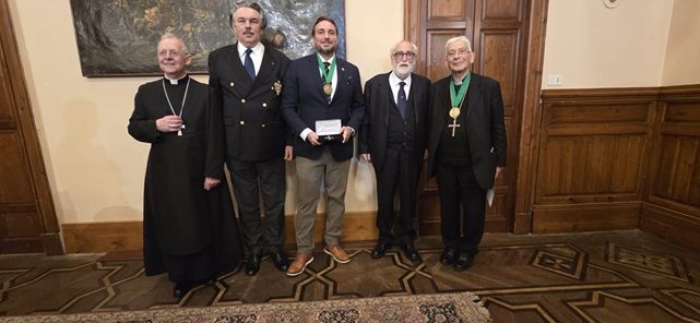 This was followed by the conferral of the honor of Member of the Companions of Merit of the Order of Saint Lazarus of Jerusalem to Don Davide Calantoni, and the Gold Cross of Merit to Archbishop Pennisi, awarded by the Grand Master for his long and fruitful service as Ecclesiastical Grand Prior of the Order.