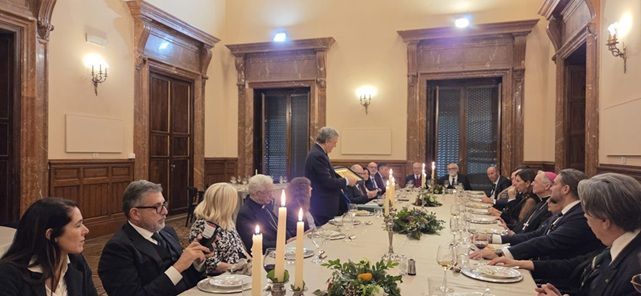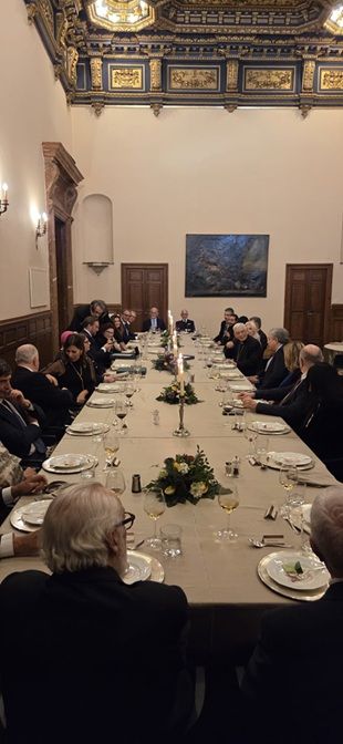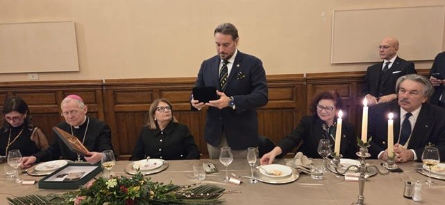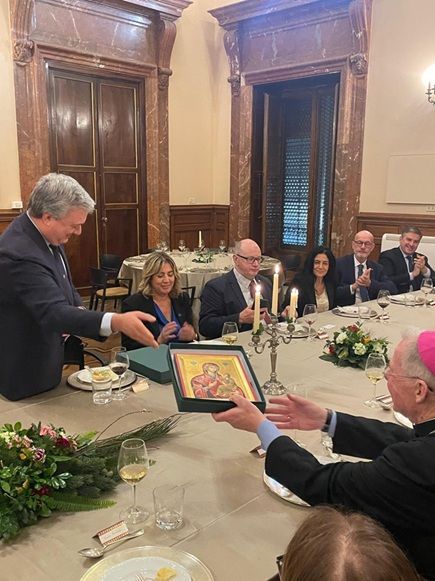On the evening of the conference, a welcome lunch was held at the Circolo Unione in Palermo, attended by members of the Grand Bailiwick's Governing Council, members of the Grand Magisterium present in Palermo, and other heads of jurisdiction. During the lunch, the Grand Master was presented with an octagonal bronze cross from the Crusades period (12th century), and the Ecclesiastical Grand Prior was presented with a hand-painted icon of the Virgin Hodegetria, made by artisans from the Sicilian Byzantine enclave of Piana degli Albanesi.