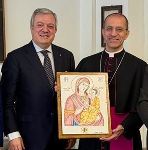 AN IMAGE OF MARY ODIGITRIA, PAINTED BY HAND ON CERAMIC, WAS PRESENTED TO ARCHBISHOP ISACCHI ON THE OCCASION OF EASTER