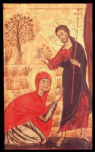 (Apparition of the Risen Christ to Saint Mary Magdalene, tempera painting, Master of the Magdalene, Galleria dell'Accademia, Florence, 128-1285)
