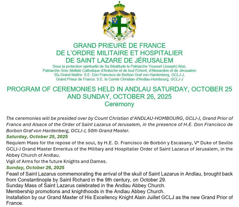 PROGRAMME OF INVESTITURES IN THE GRAND PRIORATE OF FRANCE